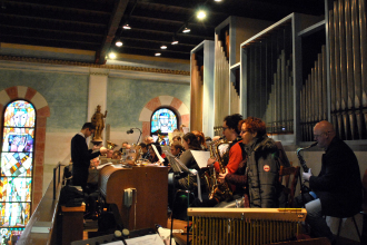 Das Saxophon-Ensemble unter der Leitung von Peter Bresch schließlich entführte die Zuhörer in die Welt der Klassik: Beim Rondo aus Mozarts Klarinettenkonzert in A-Dur brillierte Lucas Schwarz als Solist an der Klarinette. Nach Meachams Marsch „American Patrol“ übernahm wieder das Hauptorchester unter seinem Dirigenten Alexander Heinz die musikalische Gestaltung der Reise. Die Samba-Rhythmen in Barry Manilows „Copacabana“ versetzten die Anwesenden nach Brasilien. Besonders die Schlagzeuger konnten dabei in den Solopassagen ihrer Spielfreude freien Lauf lassen.