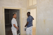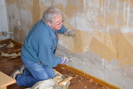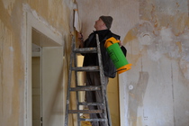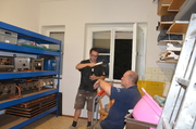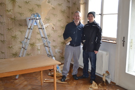 Nun wurde das Projekt Vereinshaus also tatkräftig angepackt. Die Musiker Hubert Krämer, Ralf Wagner, Peter Müller, Kevin Drescher, Dominic Walther, Fabian Wessbecher, Bernhard Wüst, Klaus Schwarz trafen sich am Samstag, um die Lage im zukünftigen Vereinshaus genau unter die Lupe zu nehmen und erste Arbeiten zu erledigen. Ein Anfang ist schon getan: Tapeten und Kabel wurden entfernt, genauso wie die Gardinenstangen und Heizungsrohre, Reinigungsarbeiten standen natürlich auch an und die Prüfung des Wasseranschlusses. Nicht zu vergessen auch das Unkrautjäten auf der Sonnenterasse! Als Beraten standen den fleißigen Helfern Bernhard Schof und Frank Mohr zur Seite.
